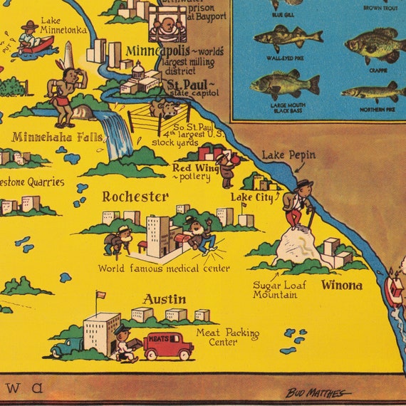 Minnesota Fishing Map Poster State of Minnesota Vintage Map Print